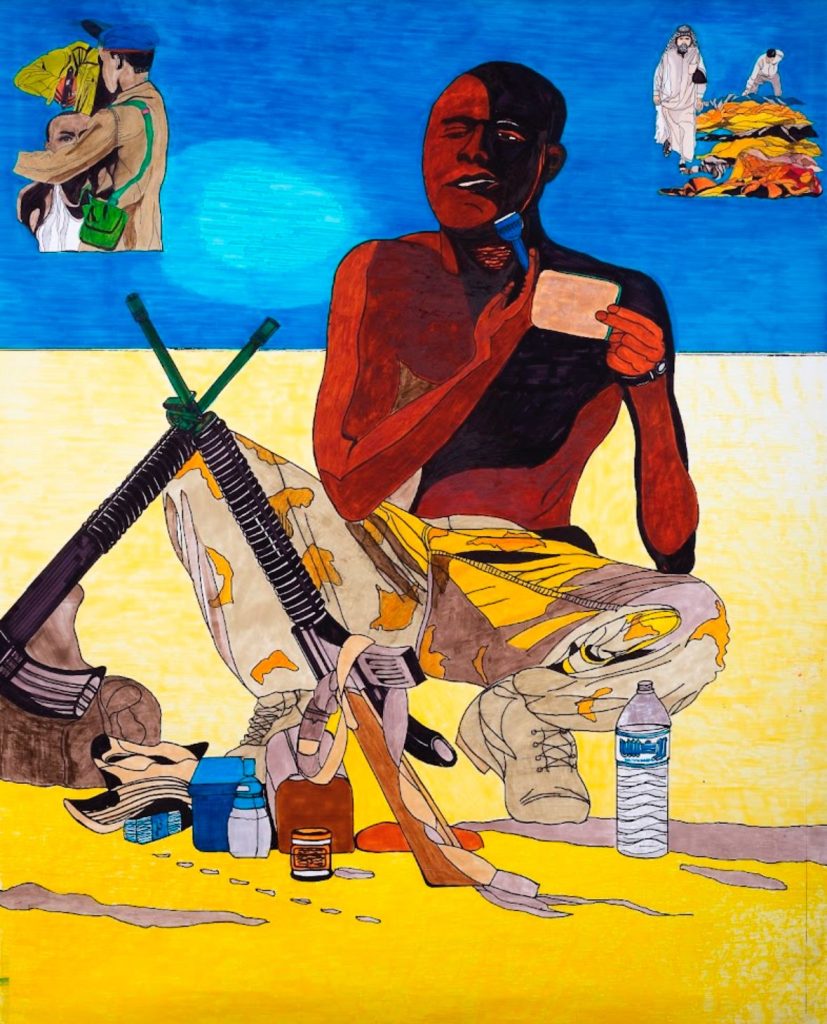 Abbiamo sempre l’immagine delle etnie che popolano le città contemporanee come immigrati o profughi, in alcuni ritratti ho rappresentato negri e marocchini in giacca e cravatta perché in quelle regioni ci sono anche persone che lavorano quotidianamente e si trasferiscono per lavoro in altre nazioni.